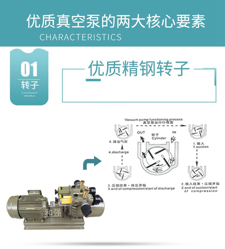 本公司YUXU宇旭无油式真空泵系列适用于:覆膜机,包本机,折页机,曝光机,分光机,天地盖,晒版机,印刷机,照排机,配页机,对裱机,喷码机,制版机,上光机,膜切机,裱纸机,胶印机,粘叶机,贴窗机,薄膜粘合机,验品机,糊盒机,信封机,纸袋机,真空升降机,真空吸盘,装订机,等其他各种自动机。产品优势:1、因为是无油式,所以在使用真空、排气时,也不含有油分,不会对作业环境和产品造成油污染。2、运行声音低(由于去掉了使人感到厌烦的高周波音,即使在相同的分贝值下,刺耳声音也很少)、寿命长。而且同时装备有真空压力表、调压控制阀。3、而复合泵由于是双气缸,因此具有双功能(真空泵、鼓风机并列),可以同时作为真空度为60kpa的真空源和排气压力60kpa的空气源来同时使用。4、与之前的真空泵相比较,该泵具有体积小,重量轻,同时操作简便。YUXU宇旭WQB15系列每小时15立方:WQB15-P-V-01 WQB15-P-V-03 WQB15-P-B-01 WQB15-P-B-03 WQB15-P-VB-01 WQB15-P-VB-03